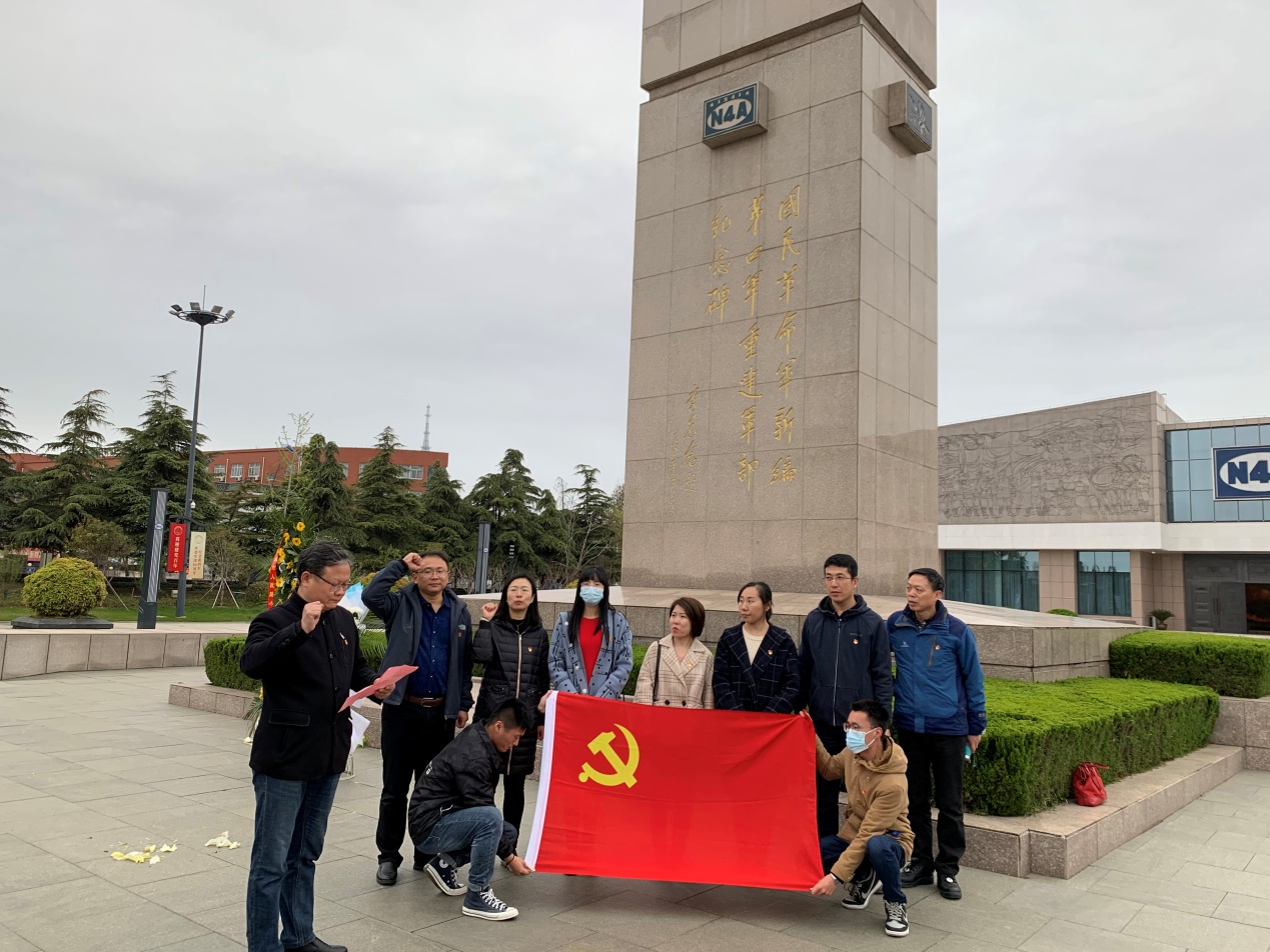 学习之后,437必赢会员中心党委中心组全体成员在新四军重建军部纪念碑前重温入党誓词。