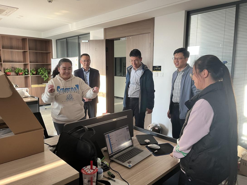 为了全面了解2021级工科专业学生在企业的实习状况,保障实习质量,推动专业建设,学院院长张志海、副书记唐杰、副院长朱成云于2024年10月30日带队赴盐南新区数字智能产业园内多家公司检查我院学生实习情况。